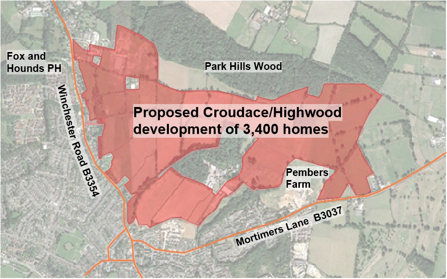 ADD UPDATE: 24 September 2025: Further to our last article on 3 September, many ADD supporters have kindly submitted their views to house builders Croudace and Highwood on their plan for a major new development of up to 3,400 north east of Fair Oak (see map above).